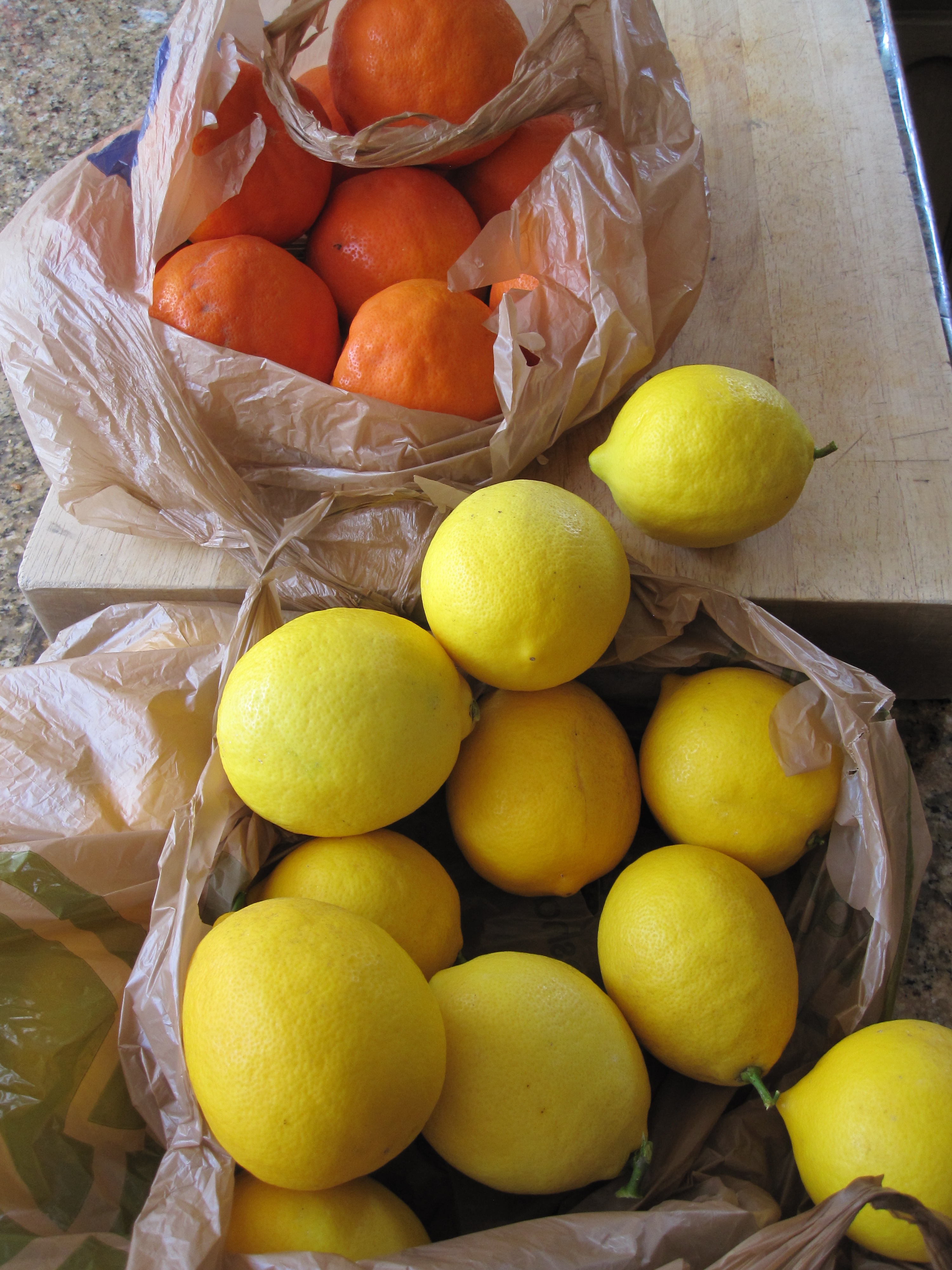 We take care of each other when there’s a surgery or a health issue or the loss of a loved one. About a month ago, Arnie had knee surgery and then his wife Adrienne was out of town for a couple days, so we brought him all the fixings for a carnitas dinner. I saw Arnie driving the other day (yay…he’s driving!). He stopped me to thank me for the carnitas and said he really needed help getting tangelos and Meyer lemons from his trees. So of course I sent Tony, who after climbing a ladder to help pick fruit, came home with two grocery bags full!!!